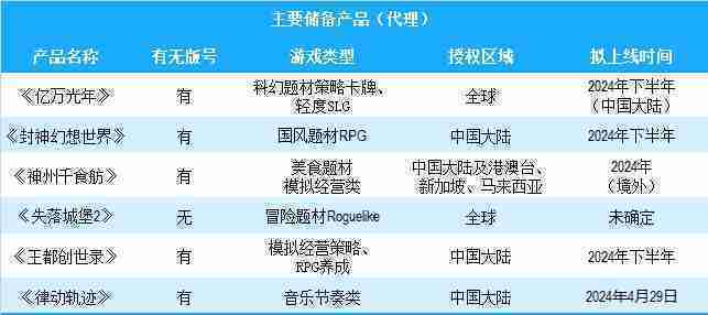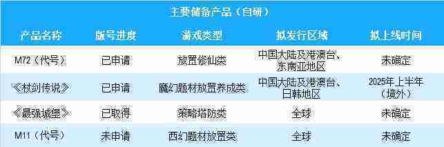 公司有多款储备产品,,,,涵盖放置类、、、策略类、、、RPG、、Roguelike等多元化游戏品类,,,,储备的主要自研和代理产品如下::