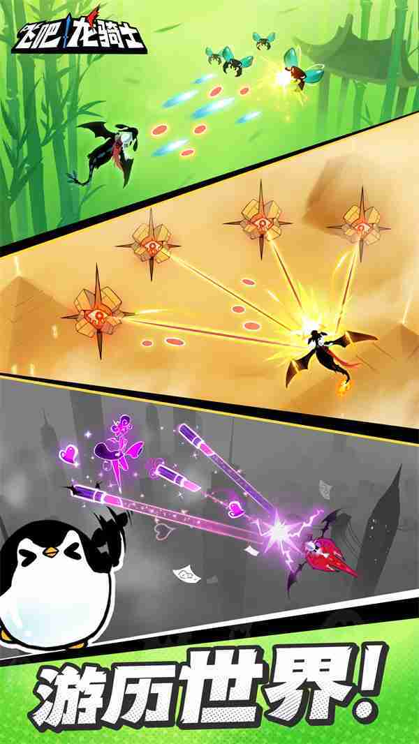 《飞吧龙骑士》是一款集合了飞行弹幕射击、、、、Roguelike要素和挂机养成的休闲手游,,,,极具创意的吞食子弹反击玩法,,,突破传统飞行射击的刻板限制,,,带来了独特的爽快清屏体验。。。。