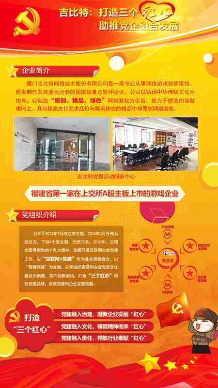 未来公司将全面学习贯彻习近平新时代中国特色社会主义思想和党的十九大精神,,,,持续强化“互联网+党建”的思维理念,,,以“智慧党建”为主轴,,,,以党组织建设和企业先进文化建设为侧翼,,双向创新驱动,,,引领有信仰、、、、有情怀、、有价值的新时代游戏研发运营,,,在不断发展壮大的同时,,,成为行业的“红色标杆”,,实现党建和企业发展双赢。。