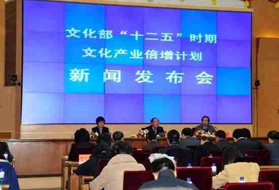 2月28日下午,,,,文化部在京召开新闻发布会,,正式向社会发布《文化部“十二五”时期文化产业倍增计划》,,,,提出了 “十二五”期间文化部门管理的文化产业增加值年平均现价增长速度高于20%,,,,2015年比2010年至少翻一番,,,实现倍增的奋斗目标。。